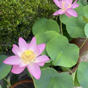 今朝ついにタライ栽培の今季初の大賀ハスが咲きました😃✌️🎊✨✨ 神々しくて、静かに咲いている大賀ハス💕💕 カンカン照りではあるけれど、時折涼やかな風が通り抜けていきました〜🌬️〜〜〜 2025.7.6🤳