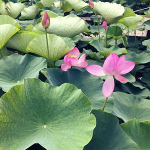 おはようございます☀ お墓まいりに行った先で見つけた蓮池のハス✨ 大賀ハス(古代蓮) 昭和26年、千葉県検見川遺跡の弥生時代の地層からハスの種が3粒発見され、そのうちの1つが発芽して今に至るそうです✨🌱 今ではあちらこちらで見られるハスなんだそうですね。 花はチラホラでしたが葉っぱが大きくてツヤツヤのハスでした😊