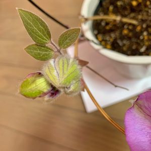 小さい方の蕾も少し開いてきました! 小さくて可愛い花が咲きそうです😂 葉っぱも緑になってきていて頑張っています☺︎