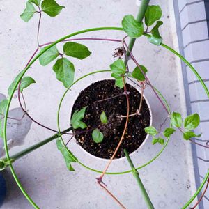 おはようございます☀︎ クレマチスがこんなに伸びました! もう少ししたらツルの誘導?みたいに支柱に止めてあげた方がいいのでしょうか🤔