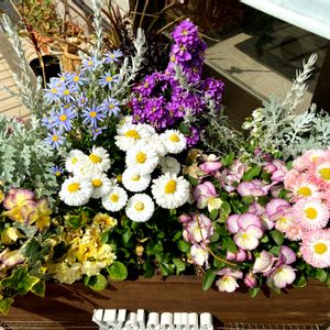 りんご箱で作った鉢に沢山植えてあります✨ デイジーが綺麗に育ってくれました❣️
