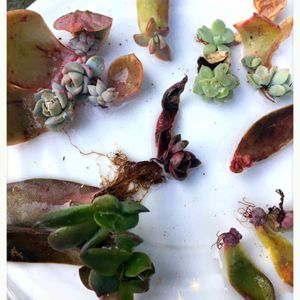 『葉挿しの日』🌱✨参加しま~す😊 白牡丹 葉挿しでたくさん増えました🎶 茶色の鉢の中にはまだまだ たくさんの赤ちゃんがいま~す😍