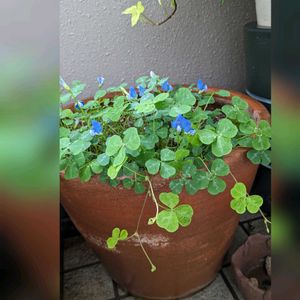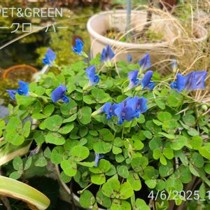嬉しい午後です💙✨ 大きな鉢の半分に 昨年植えた ブルークローバーが 五輪咲いていました。🙌🔹 🔹☘️🔹🔹💙🍀 迷ってやめた 苗の追加が少し 残念です。 午後💮さっ!何処へいこうか… ୧| ͡ᵔ ﹏ ͡ᵔ |୨ 🛵〰️🌸