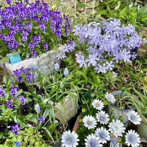 玄関前は気付けば青い花が沢山集まってました😊💙 挿し芽っ子のオステオスペルマム シルバーナイトも次々と綺麗な花を咲かせてくれています🥰 花友さんから分けて頂いた種まきっ子のブルークローバーが咲きました⤴️😆✨ とっても綺麗な濃い青い色💙 同じく種まきっ子のフロックスや ギリアトリコロールも無事開花してきました🥰