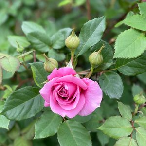 こんにちは🌹 ①今シーズン1番に咲いた薔薇さんはローブアラフランセーズ🌹 ②2番はピエールさん🌹 ③秋にお迎えした🩵ブルークローバーお花の形が小さいすみれと似ています