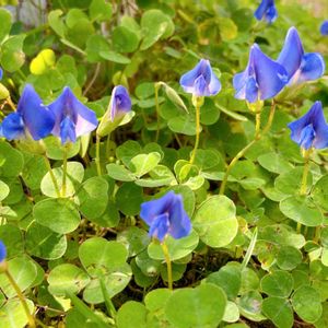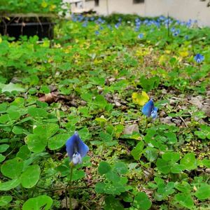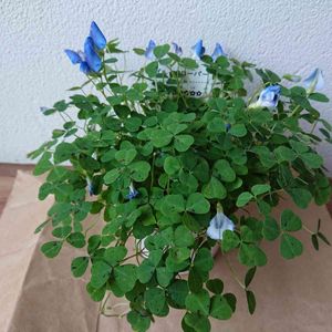 「ブルークローバー🍀」 今年の5月に友達が植え付けてくれたブルークローバーが咲いています。 今日は2個咲いてます。 3個程咲いた跡もあります。 10月~5月迄が開花期だそうです。 2センチほどの可愛い花です。 夏にハダニが発生して、みるみる弱りましたが、ハダニを取ってあげたら元気になってくれました。 常緑の植物の葉が弱って来ると焦っちゃいますよね。