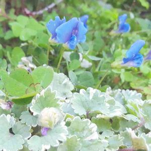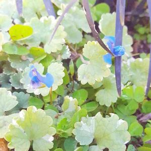 グレコマ畑の中から ブルークローバーさんのお花がコンニチハ (*ˊᵕˋ*)੭ ヤホ- 去年は鉢植えで育てていましたが すぐに根がまわっちゃうし水切れしちゃうし... どうしたものかなあと思い秋に地植えにしたら 良い感じで蔓延ってきました♡ (o´罒`o) 葉っぱにも少し模様があって 鮮やかなグリーンがとっても可愛いよ♥ 控えめな小さなお花だけど ブルーのお花は数少ないので お庭の彩りに一躍かってくれてます ⸜( ˙꒳˙ )⸝.﹢✧