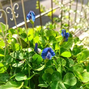 ブルークローバー🍀 しばらくぺったんこ気味で花もあまり咲きませんでしたが、このところ少し花数が増えて来ました💙 今は葉っぱ🌿に張り付くように咲いていますが、もう少し暖かくなったら花茎が伸びるかな?