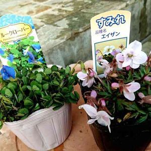 園芸店でお迎えしたよ。 家に植えてたはずなのにいつの間にか消えてしまったブルークローバー ピンク色のスミレちゃん( ´͈ ᵕ `͈ )