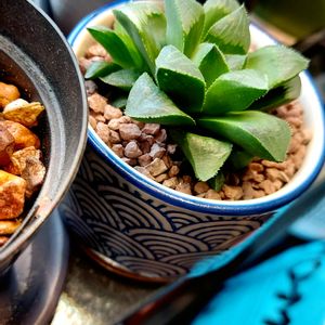 ミニプランターに寄せて植えていたハオルチアがモリモリ増えて来たので二つに分けて植え替えました♬ Vistaさんより レツーサ寿はオマケで頂きました☺️