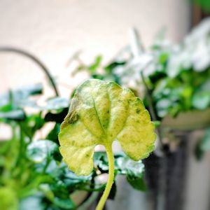 ~ウイルス?~ 購入時よりおかしな葉が数枚ありました。 「崩れた赤玉」と言う最悪な用土に植えられておりましたが、急に用土を全て取り替えてもついていけないかもと思い30%元土を残して植え替えましたが細菌が繁殖している模様。また深植えの上に受け皿は皿ではなく鉢カバーで通気が悪いことも原因の一因になっているでしょう。 我が家は無農薬ですので、とりあえずアルコールで鉢底と鉢カバーを除菌して悪い葉を取り除きました。はてさて、、、