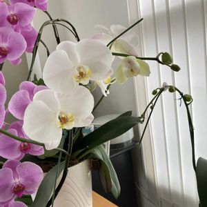(2023年5月12日 6:37頃 撮影:Galaxy A53) 去年、ちょうど今頃、道路の脇に置いてあって『自由にお持ち帰り下さい』って貼られていてうちに来た胡蝶蘭。 夏場に上からザバザバ水をかけてしまった為に成長点が腐ってダメになって。もうダメ?と思いつつ世話をしてたら子株が冬位に吹いて、そのままずっと世話してきて現在です。 まだ子株に根っこが生えてないので成長を待って親株から切り離すつもりだけど、子株は2株ある。
