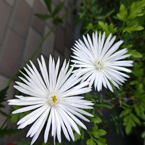 純白の松葉ギク 朝日が当たると、キラキラして綺麗(◍•ᴗ•◍)✧*。