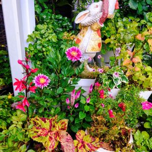 おはようございます☀️ ①ミニ薔薇がチラチラ咲いています🌹 モカ マイグラニー ②栄養系コリウス、赤色に近いジニア、ニチニチソウ ホワイト ③④宿根バーベナ アイストゥインクルがもりもり咲いています🤍🩵何年も植えっ放しで強いです🥰 ⑤エキナセア🩷唯一地植えで10年以上咲いてくれています。去年は咲いてくれなかったので今年は期待していなかったのですが 、気が付けは咲いてました。