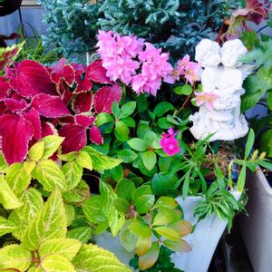 暑さに強い植物の寄植え🌿 栄養系コリウスと新たに迎えた八重咲きブーゲンビレア、撫子が植えてあります🪴