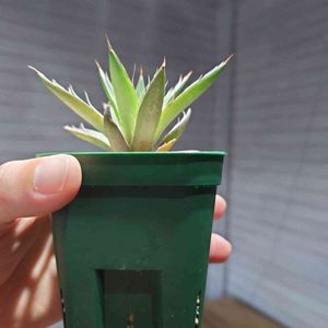 アガベ属 シディゲラ ホワイトストライプ New face! 松フラセールゲット品その1 初アガベ!白い縁に赤い針?がいいですね😊 アガベにしてはおとなしい印象👍️