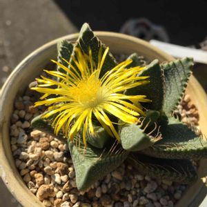 昨日咲いたフォーカリアの花 ガオガオ君からこんな綺麗な花が🌼 1ヶ月前にツボミを発見❣️ やっと咲いてくれました😊