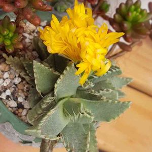 フォーカリア 怒涛(どとう) うちのガオガオ君にも タンポポのような花が咲きました フォーカリアは根腐れしやすく そうかといって乾燥させると カイガラムシがつきやすい気がします