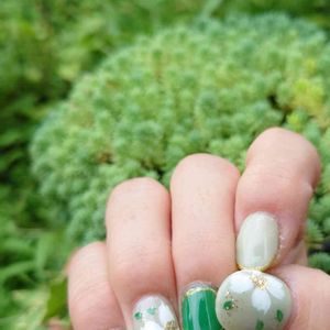 NEWネイル✨ 今回も グリーン😅 お花がかわいい💠 花束でも持って撮りたかったけど なかった😂