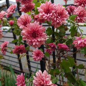 放ったらかしシリーズ… 何かよくわからないマム😂 買ったときは小さかったコものびのびダラダラ〜(笑) こんなに咲くまで気付かないくらい雑草、枯れ枝に埋もれてた😅 菊系は元気だね。