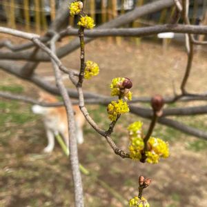 朝🐕散歩 公園の ダンコウバイ なかなか咲きませんねー でも、もうすぐだね💕