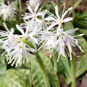 こんばんは〜🎶 🤍白花ショウジョウバカマ(ユリ科)で かねーちゃんの 🏷️火曜日は花謡曲を添えて♪に参加しますね〜🎤 🐬イルカの 🎵なごり雪🎤歌います🎶 〜🎶 なごり雪も 降るときを知り ふざけすぎた 季節のあとで 今春が来て 君はきれいになった 去年よりずっと きれいになった〜🎶
