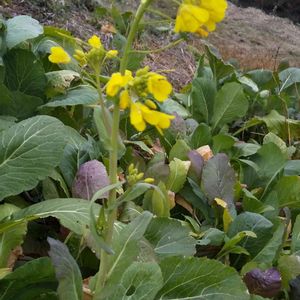 川の土手に菜の花が咲いています。 菜の花 と言っても小松菜の花だと思います。 あちこちに花を咲かせています。 いつもより早いです。 🤳1/24 でも、この最強寒波で凍えてるだろうなぁ🥶