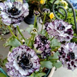 ラナンキュラス イカロス💜 黒い花芯に紫の花びらがとてもシックで素敵です(*゚▽゚*) 開花の様子がちょっと変わってて、蕾が開くというより、花びらが伸びていく感じ❓🤗