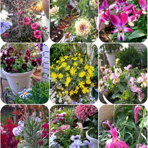 寄せ植え 午後の庭から 朝方はカチンコチンになってるプランターの土もこの時間になると柔らかくなっています。霜にも強風にも負けないビオラが好きだわ。