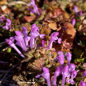 ホトケノザ 三が日は暖かく、晴れました。 陽当たりの良い畦道に、春を先取りしてホトケノザが咲いています。