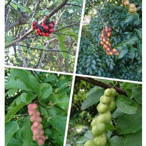 コブシの実 右下→左下→右上の順で 夏から秋へと変化してゆきます 左上だけ違う場所の実かな? 一番綺麗な赤い時を撮れてないかもです まだ若いのあったから再チャレンジしたい p