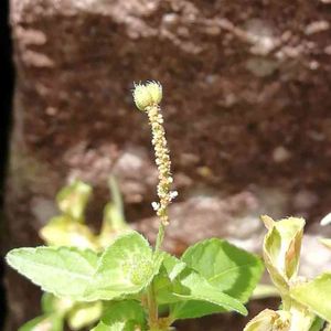 エノキグサ🌟 飛び出した雄花の上に実がなっています😀 変な形してますね🧡 下の葉に包まれているような感じの雌花。これも面白いですね♥