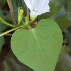 マメアサガオで合ってますでしょうか? マメアサガオ 豆朝顔 ヒルガオ科サツマイモ属 一年草 これは単独でしたが、マルバルコウソウが生えてる中にも同じように白い花とピンクの花(あとで投稿します)を見つけました。葉も写し混みました。