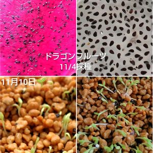 ドラゴンフルーツ11/4採取 1週間でウワッと🌱発芽🌱 2週間足らずで🌱立ち上がる🌱 この先どうなるんだろう…♪ 厳冬を乗り越えサボテン🌵になるかしら🤔