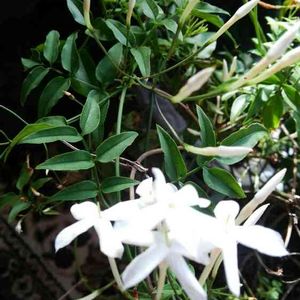 羽衣ジャスミンが 咲きだしました!💓😂好きな 香りとも言えない😅😚我が家の猫は気になってるようです😸