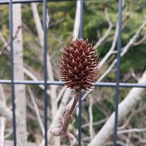 歩道脇のフェンスからひとつ飛び出してた ノグルミですね 触るとイガイガしていました クルミ科 ノグルミ属 落葉高木 分布 東海地方以西~九州 花は6月 冬芽の頂芽は卵形 側芽は小さい 葉痕はハート形、半円形 3月13日撮影