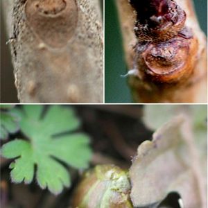 山鶯神楽 ヤマウグイスカグラ 冬芽 スイカズラ科 スイカズラ属 分布 北海道南部 本州 四国 九州 花期 4〜5月 果期 6月 ⬅️ 葉芽 卵形 ➡️ 混芽 ふっくらしていて花色が見えているので混芽だと思われる。 托葉(ウグイスカグラは対生した葉柄の基部が広がり互いに枝を抱く形で合着し鍔状になった)が枯れ残り芽はその托葉と茎の間から対生して出ている。 芽鱗は膜質でそれが破れて裸芽状態になる。