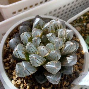 VISTAさんのハオルチア、頼んでしまった(,,ơvơ,,) レビューがすごく高評価だったけど納得! 子株もりもりでバランスは良くなかったり、土に埋もれてたりはしたけど悪いことではない。 達磨は流石に埋まり過ぎだったので植え替え。 黒もだいぶ片寄っていたのと子株が大きかったので分けて植え替えてみた。 本当はしばらく怖いから触りたくないんだけどね。゚(゚´ω`゚)゚。 根っこもヤバかった!上のボリュームに合わせた鉢だとねじ込まないとっていうくらい根っこがしっかり‧˚₊*̥(∗︎*⁰͈꒨⁰͈)‧˚₊*̥ 立派な子たちなのにダメになりませんように⇦植え替え下手くそ… VISTAさんのおまけ、破壊力ヤバイ。 寿宝殿、お高いよ!しかも痛みもないしパッツンパツンだし、気が引けるくらい。 おまけ用の小さい株とか用意してもいいのに(•﹏•٥)💦 ピクタ系は好みではなかったのでお初のお迎え。 これでハマっちゃったり(*´艸`*)