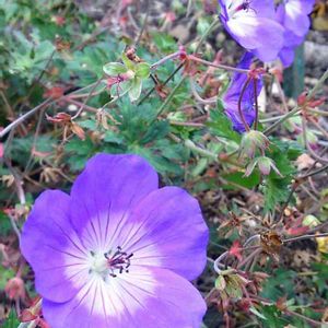 おはようございます✨🙋 〈ゲラニウム*ロザンネ〉 別名:フロウソウ… 長い間「変わらぬ信頼」を寄せていても、「妬み」や「嫉妬」で裏切られることもありますね!😞💨そんなことで落ち込んでいる人がいたら、『悪いのは裏切った方だから、そんな人のために落ち込むことはないよ❗』って「慰める」よ❗そして「陽気」になるよう、一緒に楽しんじゃお~🎵😄♪😁🎶 花言葉「変わらぬ信頼」「妬み」「嫉妬」「慰める』「陽気」…イッパイツカッタヨ~♪😉笑 ● 分類 フロウソウ科、多年草❗ (自然交雑によって生まれた‼) ● 草丈 40~80㎝程❗ ● 花期 5~10月頃❗ ● 花径 5㎝程❗ ● 花色 濃桃青紫❗ 〇 RHS(王位園芸協会)より 「 プラント・オブ・センチュリー」に選出❇ 推薦植物に与えられるAGM獲得❇ (ノ_・。)ヾ(・ω・*)♪・.・*・.◆