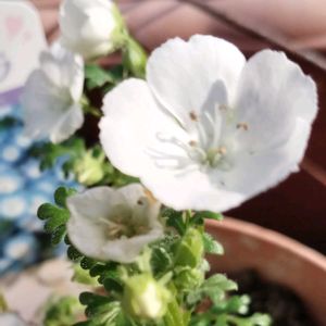 おはようございます😊 ①②ネモフィラ 青🟦のラベルが 白🤍が咲いた… ③④二輪草(板橋区の花) ⑤ もみじの花(水車公園)