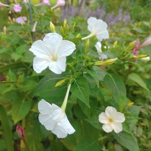 不思議発見💡 去年咲いたピンク色のオシロイバナの種を蒔いたら 😲アララ❗ 白い色が咲きました下には薄黄色も😆👌 オシロイバナってオモシロイ🎶