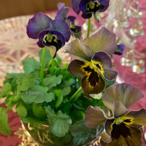 ビオラ Lady クリスマスイブのテーブルに✨ お迎えした時は黄色っぽかったのに、今はこんな素敵なブラック🖤💜💙すぅっと入る金の縁取り✨ 色変わりが特長とはお聞きしてたけど、こんな渋いお顔を見せてくれるなんて、もう、毎日がきゅんきゅんの連続です(๑>◡<๑)