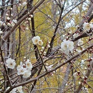 裏山の竹藪に端っこの白梅 日曜日くらいから本格的に咲き始めました 清楚なお花