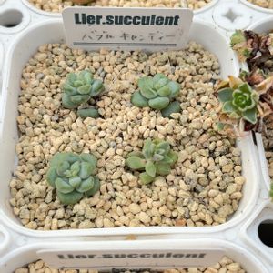 明日から朝冷え込む予想😆 しかも明日の夜中は雪マーク❄️ なかなか春にしてもらえないですね~🤣 今日のpicもLierフェス苗です。 バブルキャディーです。見るからに食べたくなるようなkawaii多肉です。😋😋 夏顔は、わかりませんが増やしていきたいですね😁😁😁