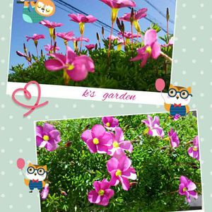 こんにちは*ˊᵕˋ* 今日は朝からしとしとと降る雨…。 今日は、家の中の整理をしなさいって事ね…。庭仕事にせいを出しすぎてちょっと家の中が散らかり気味…。片付けなくちゃね😅 今日のpicは、オキザリス2種。 ‘パルマピンク‘と‘桃の輝き‘。今日雨と言う予報だったので、昨日撮影しました*ˊᵕˋ* ‘パルマピンク‘は、昨年の夏に植えた球根…。買った時の袋には、耐寒性はあるけど…雪が降ったり、霜が降りる地域での屋外植え付けは避けて下さいって書いてあったけど…無事に開花しました。 植え付けた場所は、駐車場のタイヤとタイヤの間になる部分の花壇。夜は、車の下になるから保温性あるのかしら? とりあえず、ここには多肉がたくさん植えてあって、どれもなんとか生き延びてます。 ‘桃の輝き‘の方は、今年近くの小さな花屋さんで蕾が沢山ついていて80円で売られていた苗です。ピンクはピンクでも色が違うから、可愛い感じになったかな? 多肉の緑ばかりの中、彩りを添えてます😊