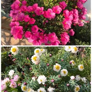 三色のジュリアンとオキザリス桃の輝き❣️ ジュリアンはよく咲いていますが 桃の輝きはなかなか咲きません😥