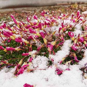 おはようございます😄 朝早く、少し雨が降っていました☔ 今は曇り空☁️ 気温はそれほど低くはありません(最低気温3℃最高気温10℃予報) 昨日撮ったものですが… 数日間、雪の中⛄❄️に埋もれていた地植えのオキザリス** 八重咲きのポンポン&桃の輝き♫ 大丈夫でした😄🎶 心配してくださりありがとうございました🙏