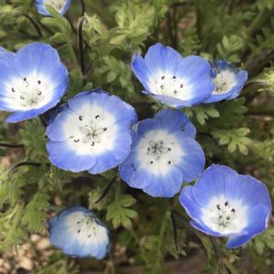 ネモフィラがよく咲いています。咲き始めよりもお花が少し大きくなったような。花弁にある点々が特徴的 3枚目はオックスフォードブルー🫐 花をたくさんつけています。このなんとも言えない青色(群青色?)大好きです💙青にも色々な色がありますね。冬越ししてくれるのかヒヤヒヤしたけれど、なんとか乗り越えてくれました✨もっと増やしたいな〜☺️