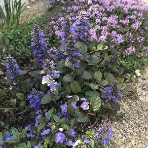 だいぶ暖かくなりました😊 一週間ぶりに庭に来ると… 花がたくさん咲いていました!🌸🌸🌸🌸😆 オックスフォードブルーとアジュガ、タイムが咲き揃いました。とくにタイムのピンクの絨毯にうっとり…✨もっと増やしたい!ということで、切り取って移植してみました。上手く増やせるといいな〜🌸