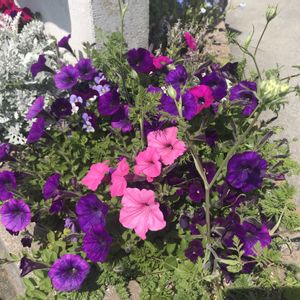 越冬したサフィニアが咲きました。地植えで何もしなかったのですが、ときどき切り戻していました。強いなぁ✨ 隣はアリッサム。暖かくなってもりもりと咲いてきています😊